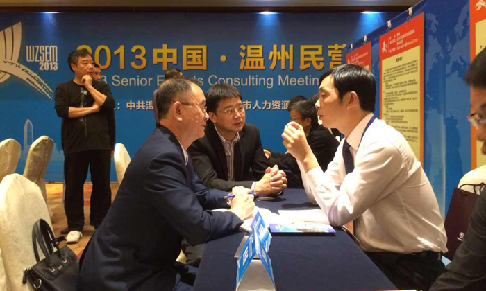 在市区喜来登酒店4楼的“2013中国温州民营企业高层次人才洽谈会”现场,130多位海外人才在94个展位前入座,而展位背后的展板上均有该海外人才的名字,以及他们所掌握的科研技术及科研项目的相关介绍。400多家温州民营企业的相关人士发现感兴趣的项目便可与海外人才进行洽谈。现场不时出现温州本土民营企业与海外高层次人才“一拍即合”的情况。